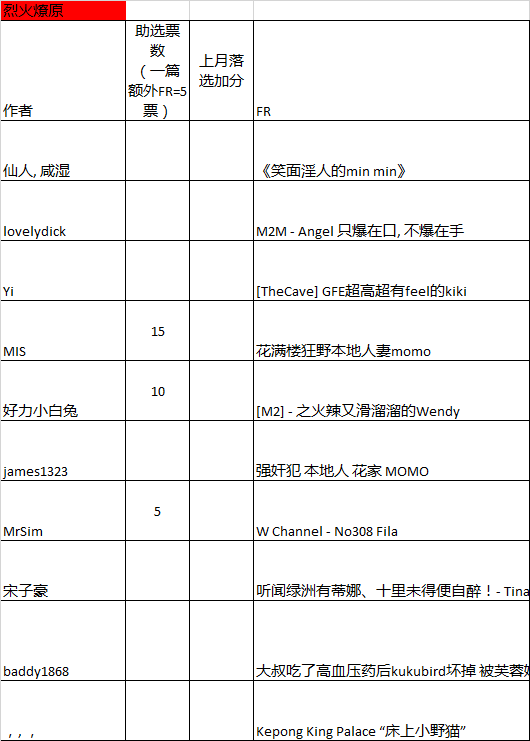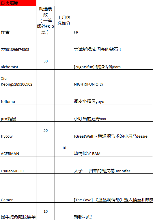 由于10月雄猫网主题FR活动——【冰】与【火】的竞争比以往激烈,经过雄猫网内部几日的商讨,决定筛选出各主题里最多20篇FR,让各网友们投选出优胜FR。