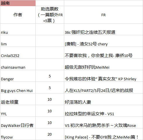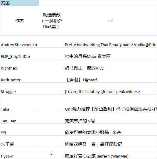 经过雄猫网内部几日的筛选,5/6月雄猫网主题FR活动——【泰】与【越】的各10篇FR已被选出,请各网友们参考以下FR来投选出优胜FR。