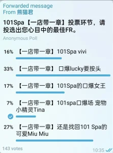 投票结束!101Spa【一店带一章】的最佳FR是: