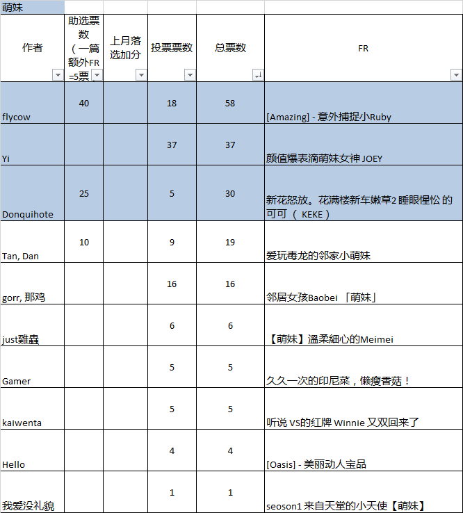 经过雄猫网-交流群 5日的投票评选,8月雄猫网主题FR活动——【萌】与【御】的各3个优胜FR已经决出: