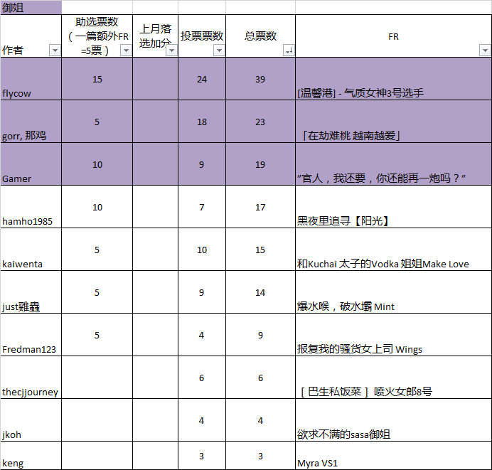 *奖励FR的小姐对象不能和您在8月投稿FR的小姐一样