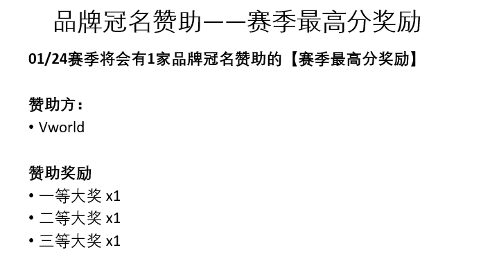 01/24赛季将有1家品牌冠名赞助的【赛季最高分奖励】。