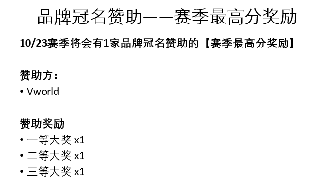 10/23赛季将有1家品牌冠名赞助的【赛季最高分奖励】。