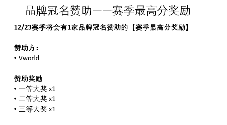 12/23赛季将有1家品牌冠名赞助的【赛季最高分奖励】。