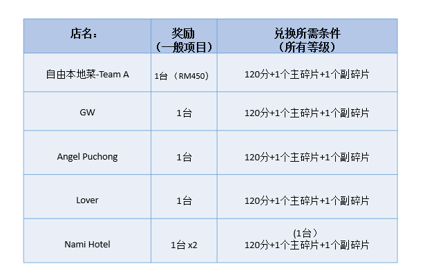 3. 若要购买赞助商副碎片,必须先确定自己有足够的分数才能购买。确定要购买的话,可以在此帖留言【购买XXX副碎片】,XXX为你想要购买的赞助商店家名字。