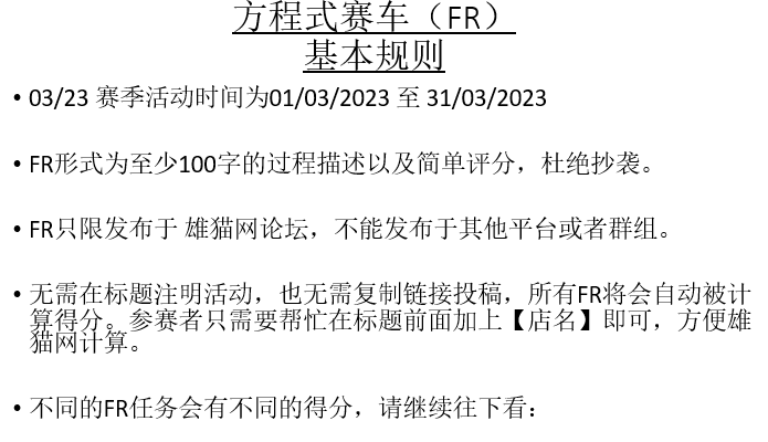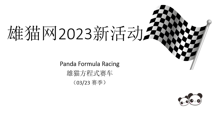 大家好!雄猫网在3月份将会继续举办Panda Formula Racing 雄猫方程式赛车,本月将是03/23赛季。