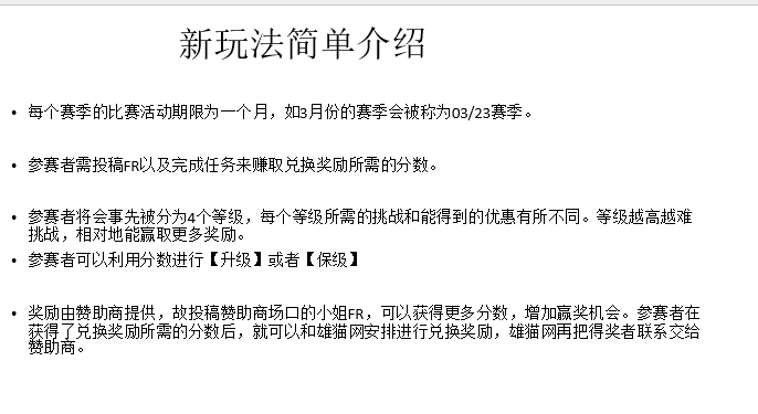 注意:本赛季将会在一些内容上进行调整