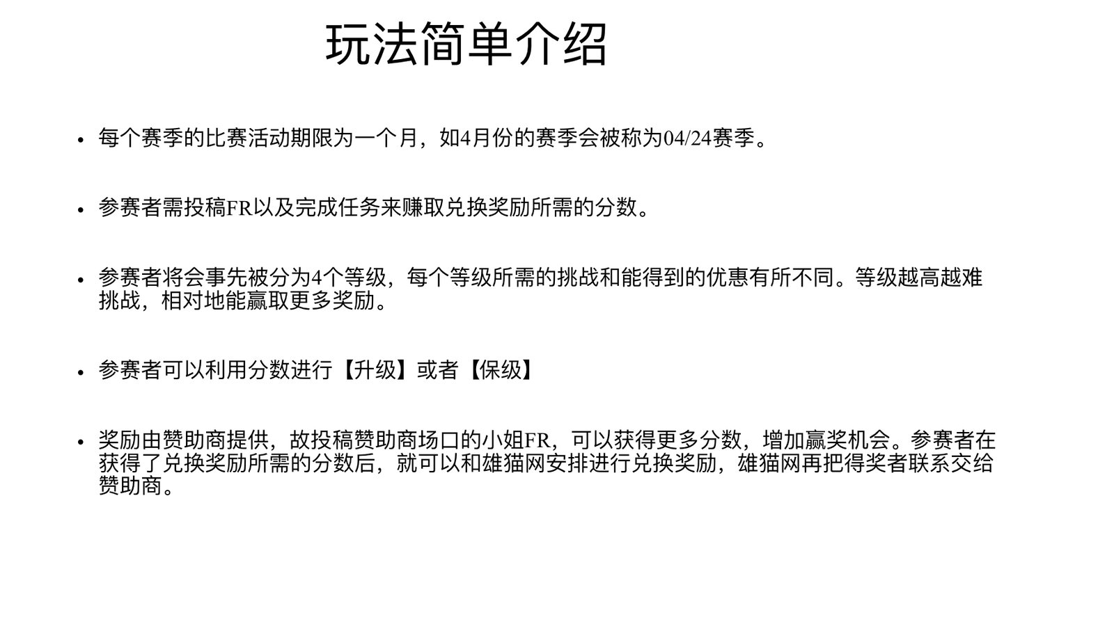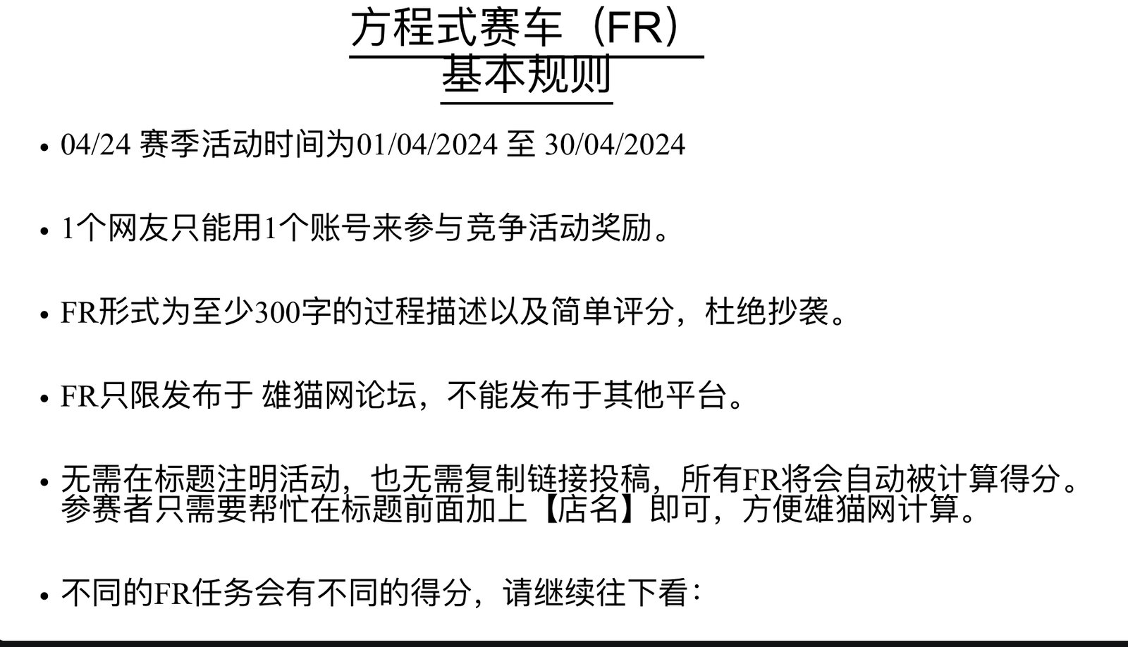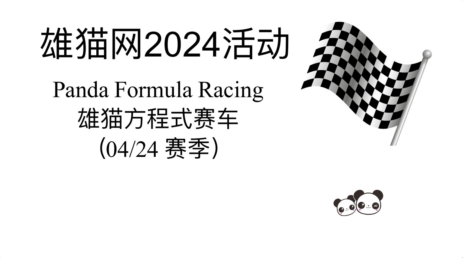 大家好!在4月份将会继续举办Panda Formula Racing 雄猫方程式赛车,本月将是04/24赛季。