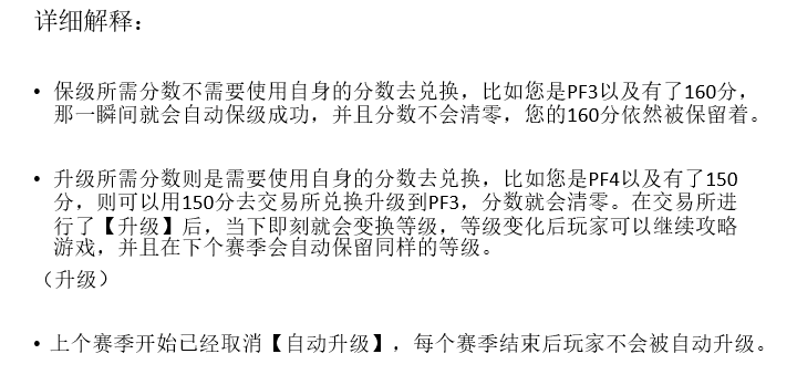 升级疑问:如果升级去pf3,本身不足160分数,那样新赛季到来是否会降级回去pf4