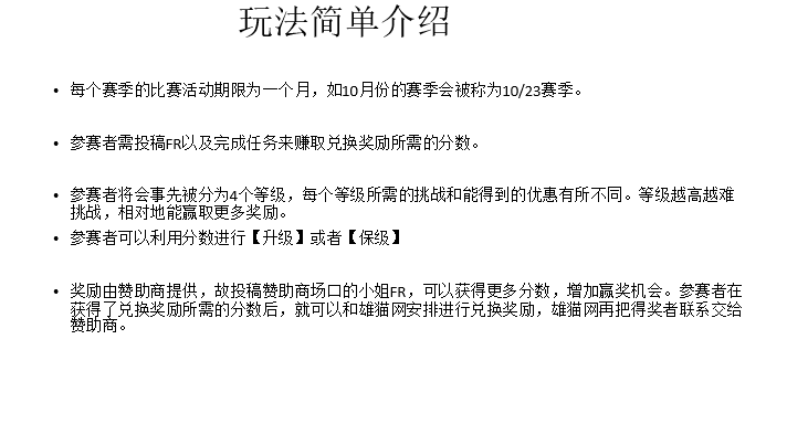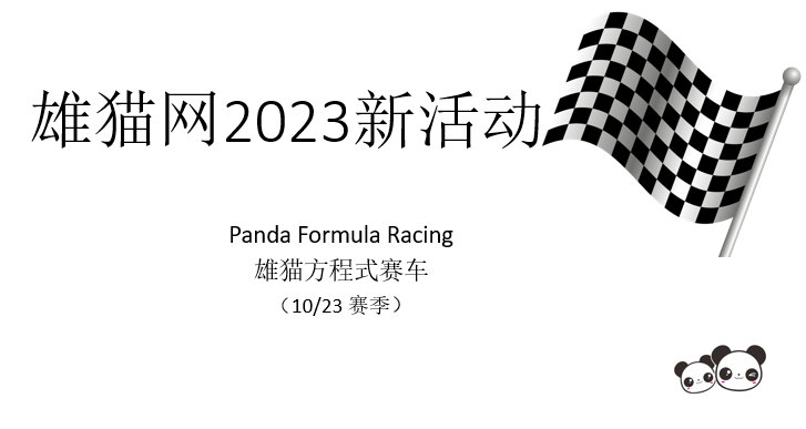 大家好!雄猫网在10月份将会继续举办Panda Formula Racing 雄猫方程式赛车,本月将是10/23赛季。