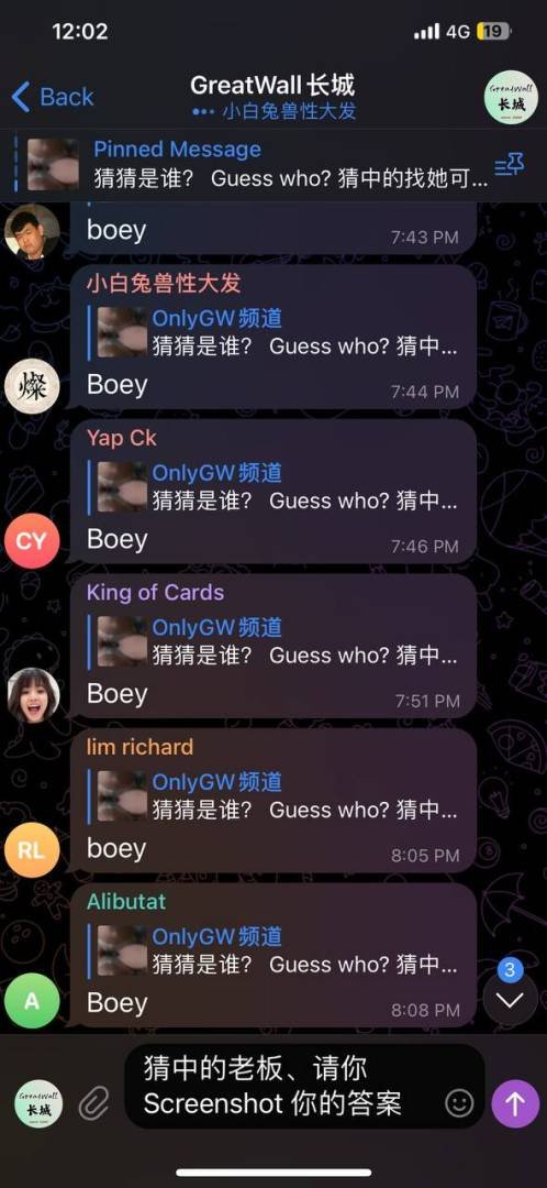 GW 電報群裡搞了一個“看內褲認人”遊戲,猜中者還可以拿扣20元。結果那熟悉的白褲褲,一看就知道寶兒的,當然不只我猜對,一大票兄弟都猜對了。我以為只是商家搞好玩,抱著疑惑詢問,結果還真的有折扣,還可以用在任何一個小姐身上。我本來要去找已經想要找的紅牌bonnie,結果她家來親戚把我的夢打碎了。既然這樣,還是只能上面去照鏡就好了。