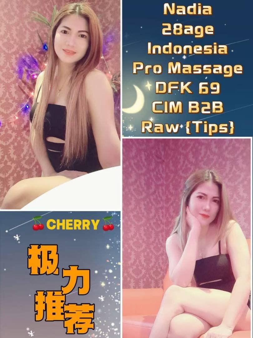 时间回溯到上星期五,我和同事放工后一起打羽球。打完球的时间大概7PM,这时四周都在塞车。与其把时间花在塞车上,不如直接找个地方放松身心更舒服。打开熊猫网经过了一番搜索,发现Puchong的Cherry在KD这里刚开了分店不久,而且我就在这里附近。马上跟OKT联络一下确认了地点后就快手快脚地上门寻花问柳。上到去以后,跟OKT Peter交流了一番,原本OKT要安排照镜,可我之前在商家Telegram的群组看到有个印尼妹Nadia的按摩手法好像还不错就跟OKT说不用照镜了,Nadia现在有空的话就直接给钱on了。不一会,妹子就笑笑地出来带我进房。
