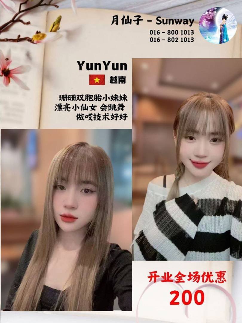 双胞胎一直都是我一生所爱 近日看见小三YunYun有提供了双飞服务 安排了一下时间就和狼友们一起出发sunway月仙子 到了店里聊一下天后就看见小三yunyun一起来大厅带我上楼 我第一次这么害羞地和小姐上楼 我完全不敢看向他们 只看死死的盯着前方 感觉大家都在看我这个方向