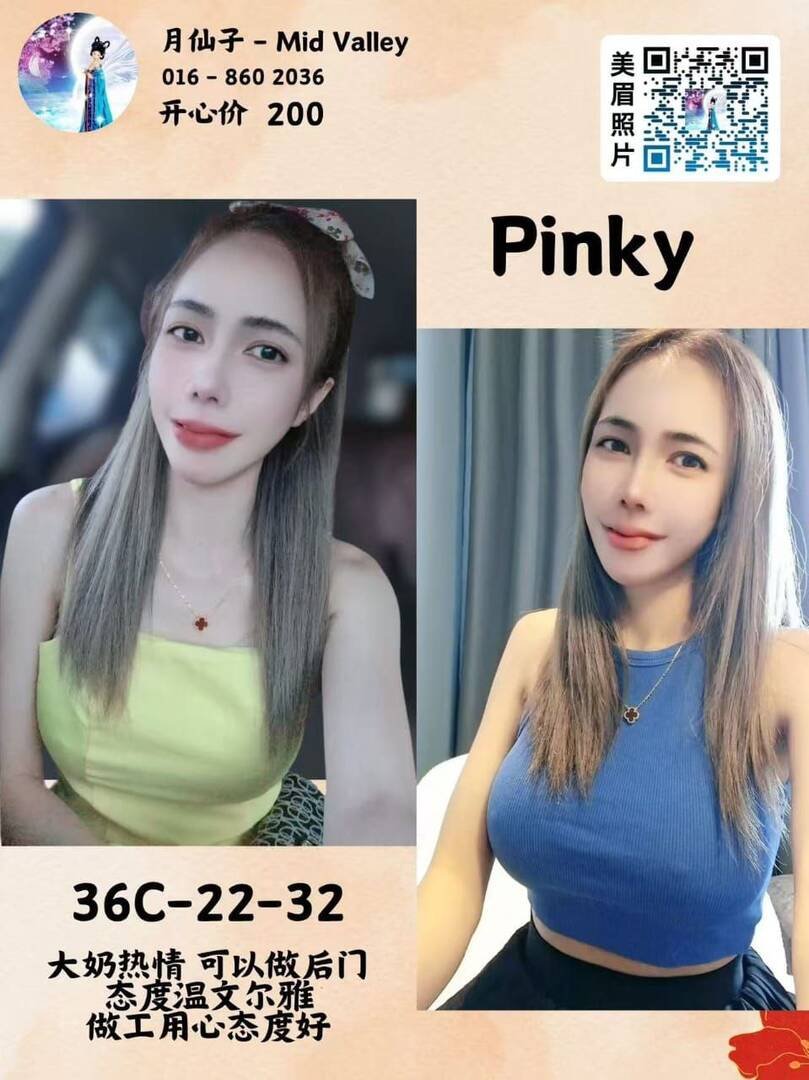 今天休息天,打开tlg看看有什么妹子,刚好今天是Cheras月仙子的优惠日,就询问店长,之前看中的妹子有在不,结果是有但在晚上,于是就看看mid valley那间,刚好看到pinky有在,就询问店长和预约时间。