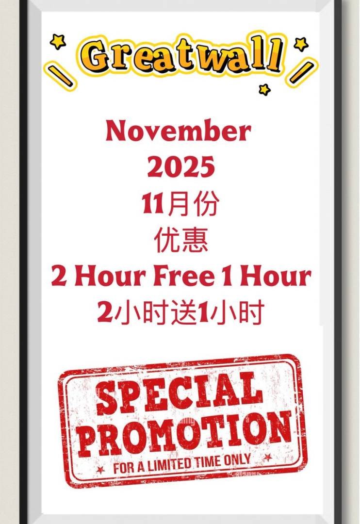 Great Wall 长城 Puchong ➕ GW HOTEL 长城酒店 Kuchai Lama 都有这个优惠 !!!