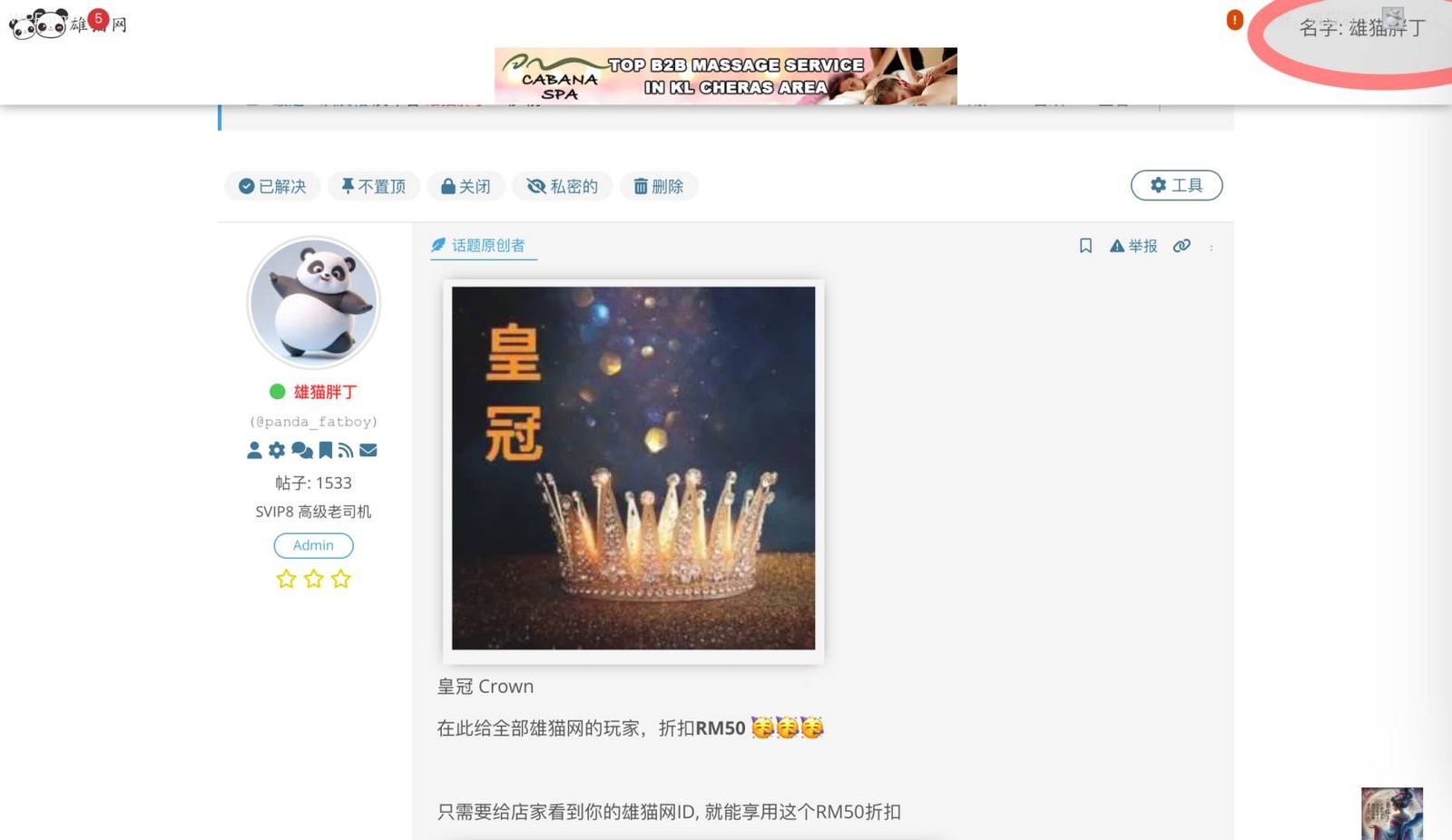 只需要给店家看到你的雄猫网ID, 就能享用这个RM50折扣
