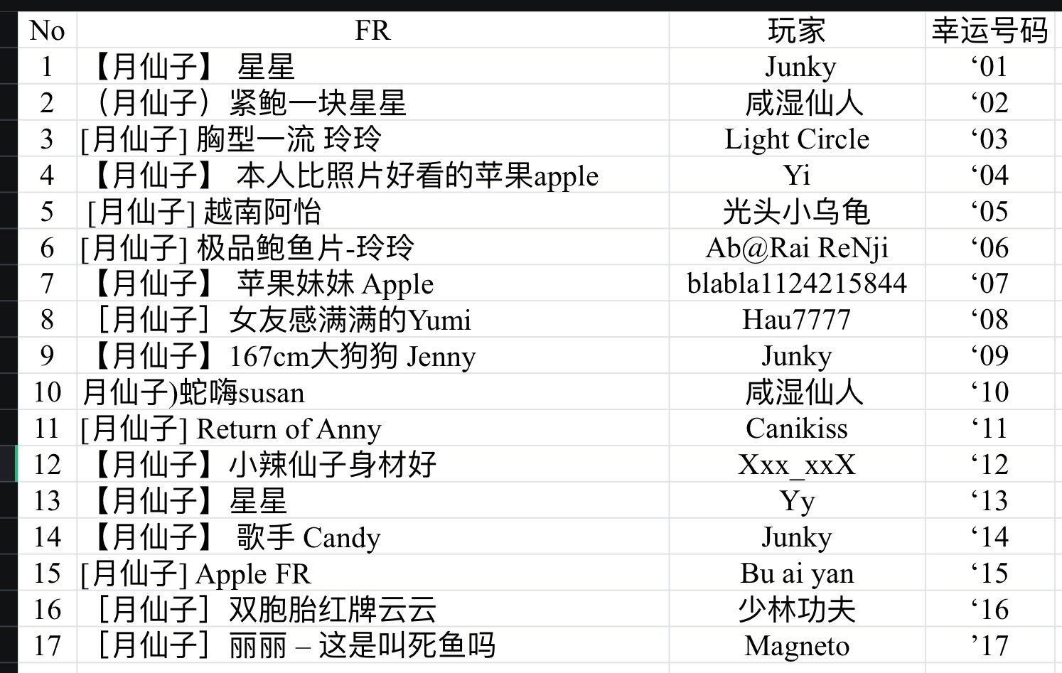 以下就是月仙子包夜抽奖方式 (轮盘) :