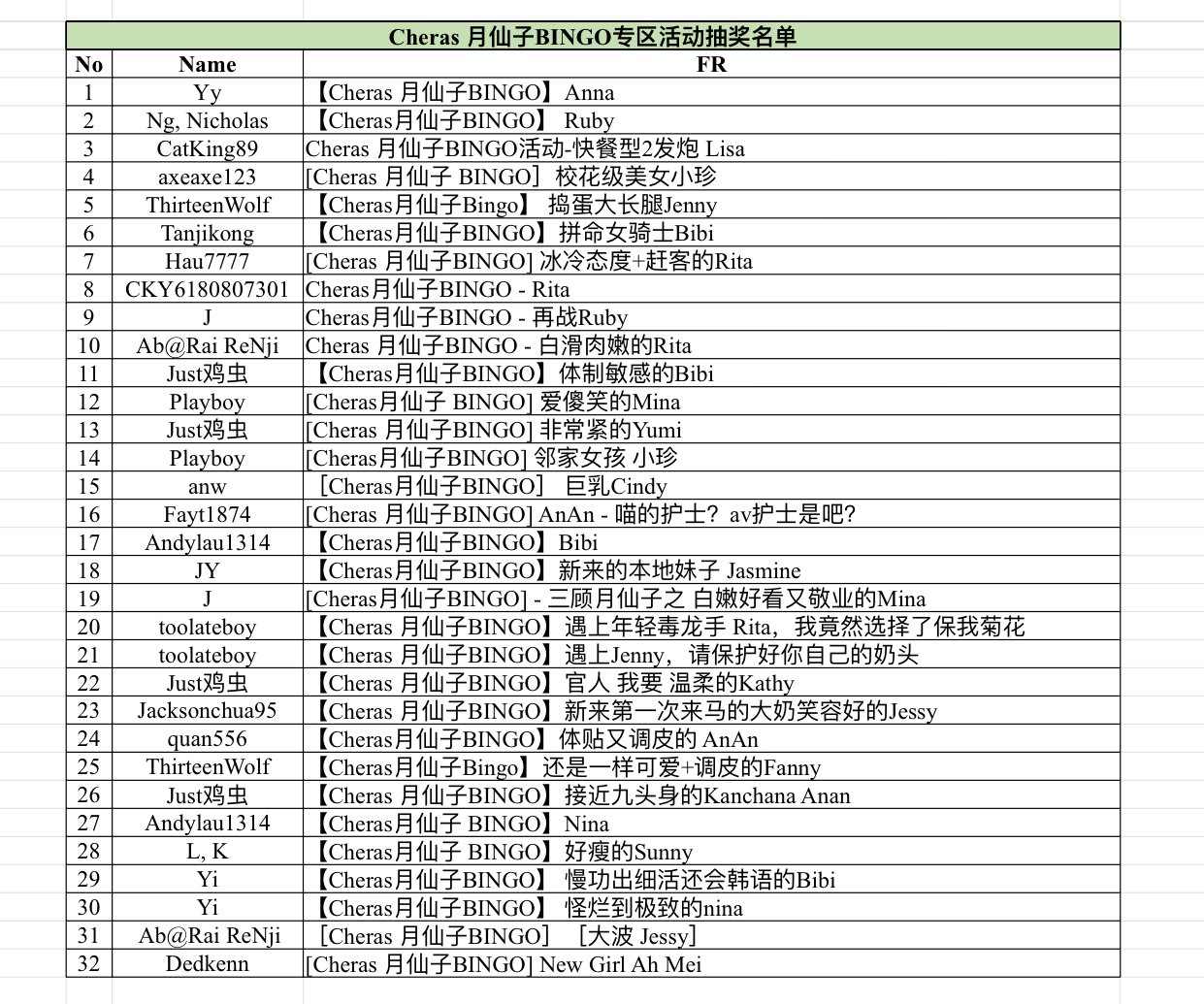 Cheras月仙子专区活动 - 得奖名单 :