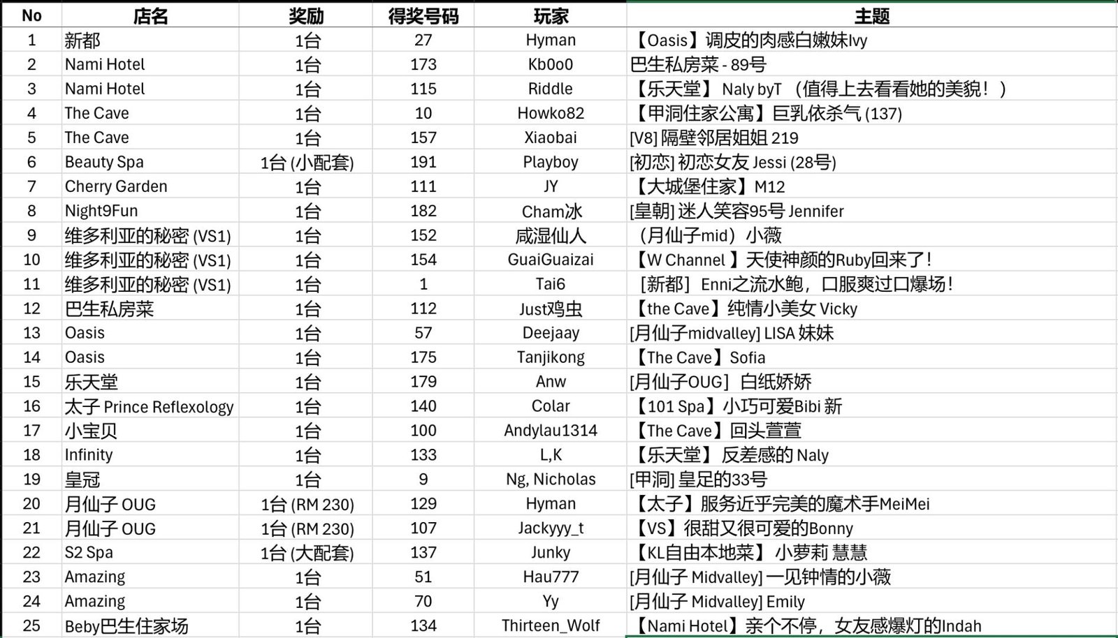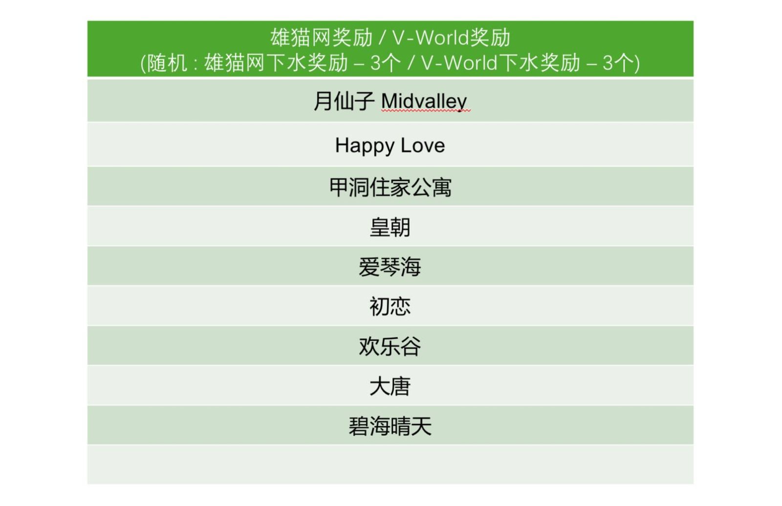雄猫网3周年抽奖活动 - 得奖名单 :
