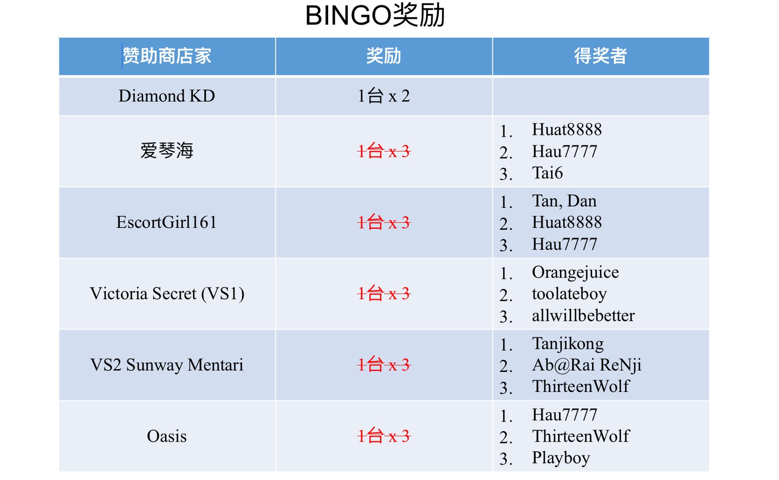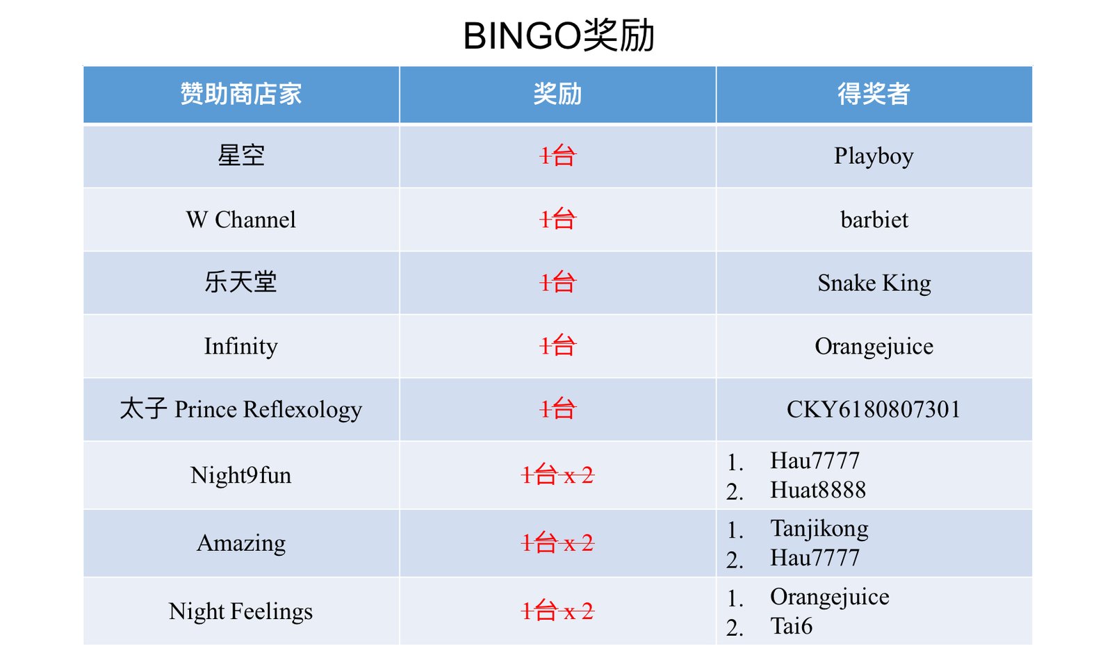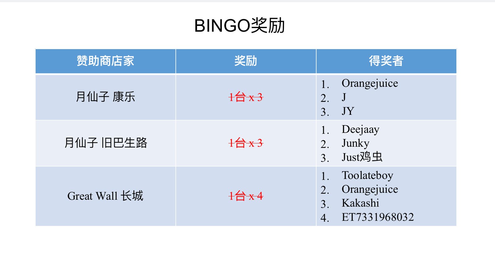 1. 若凑足了所需BINGO资格,可以在此帖留言【兑换奖励】。