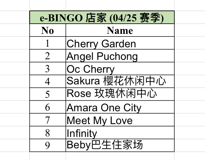 可以获得 e-BINGO的店家 (04/25 赛季)