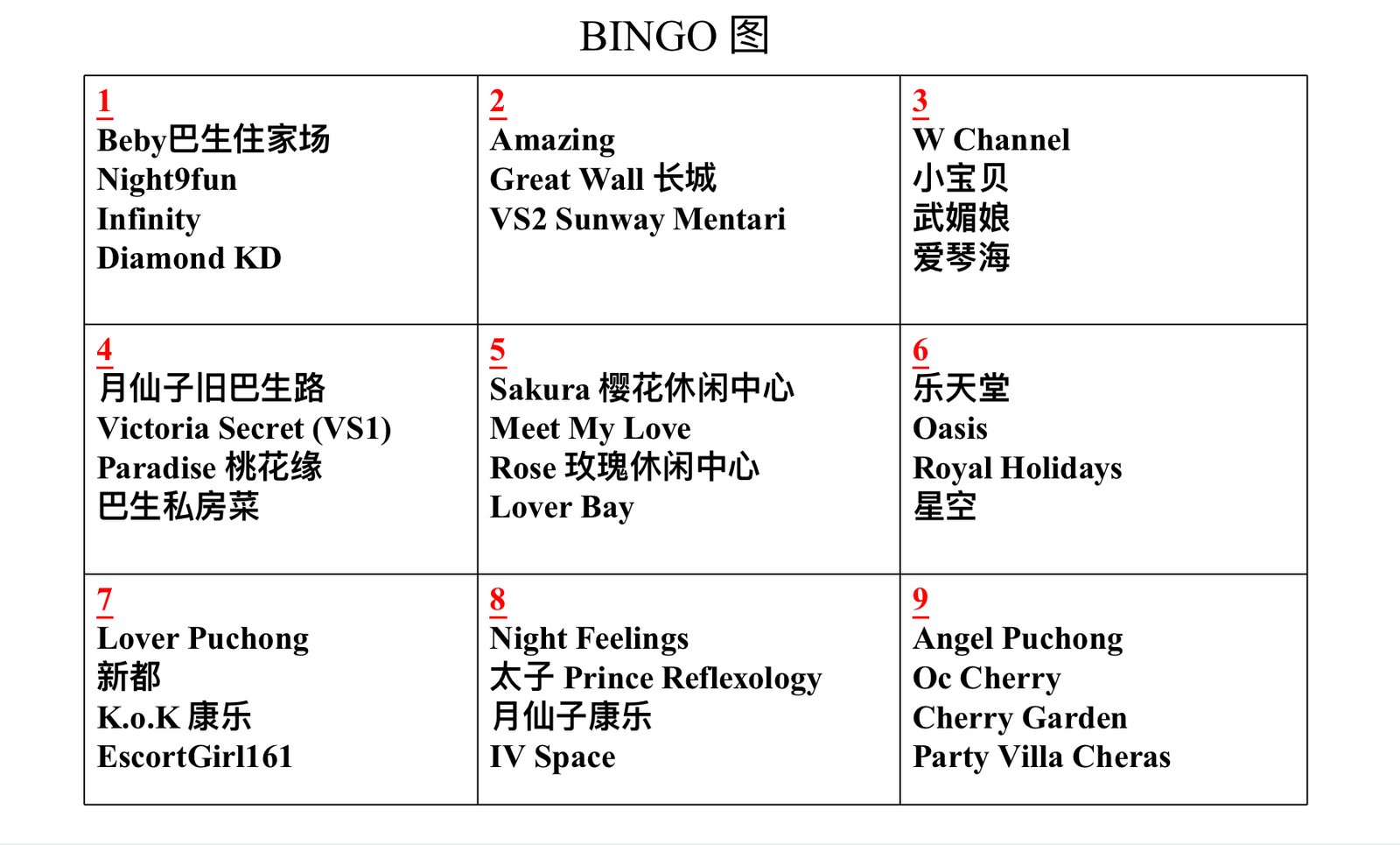 Night9fun的Bingo只给予小姐的FR在以下地区 :