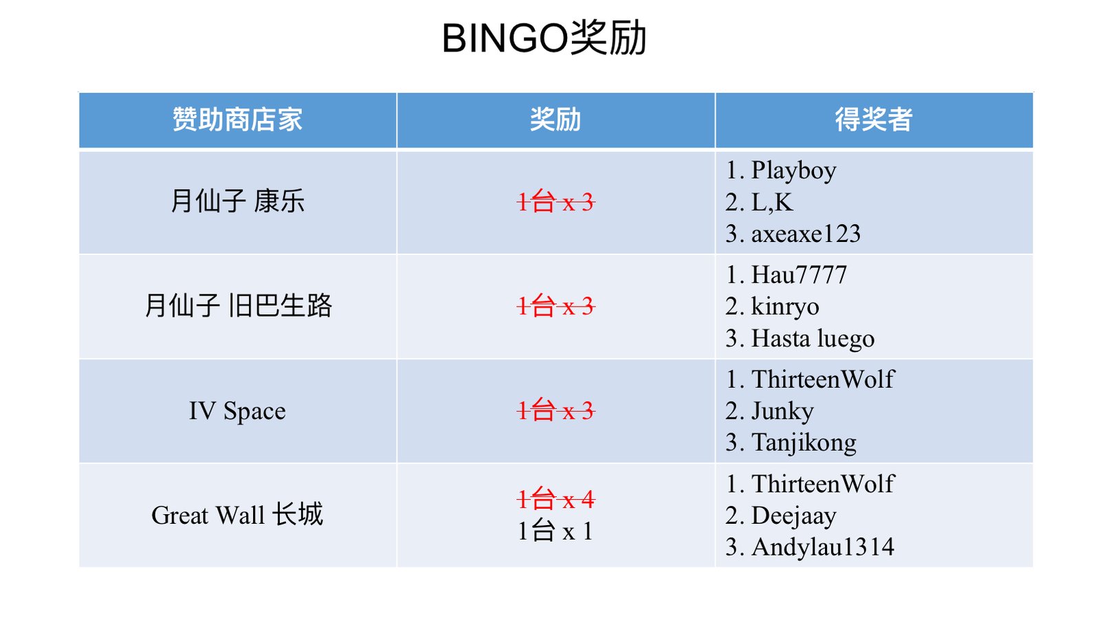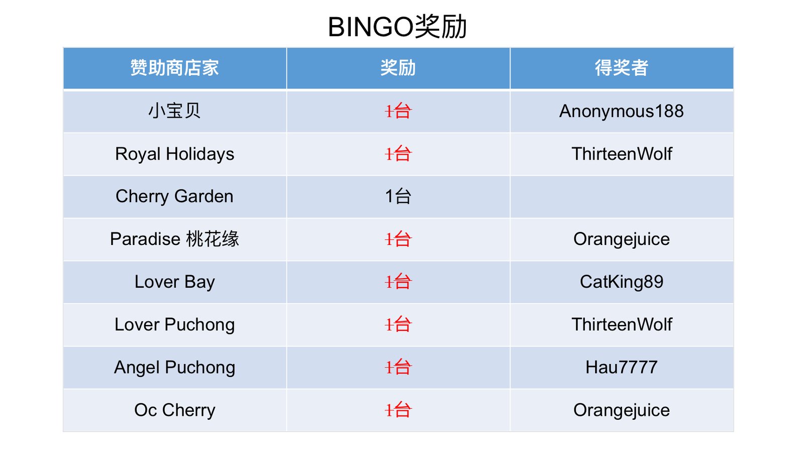 1. 若凑足了所需BINGO资格,可以在此帖留言【兑换奖励】。