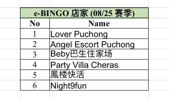 08/25赛季 e-BINGO的店家 :