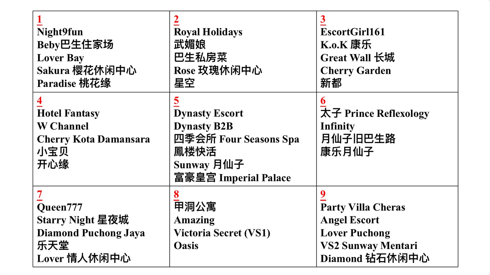 Night9fun的Bingo只给予小姐的FR在以下地区 :