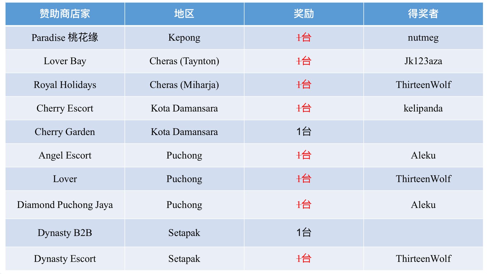09/25赛季 e-BINGO的店家 :