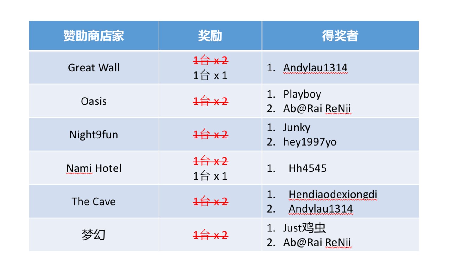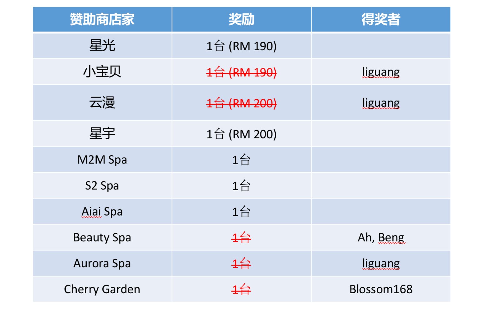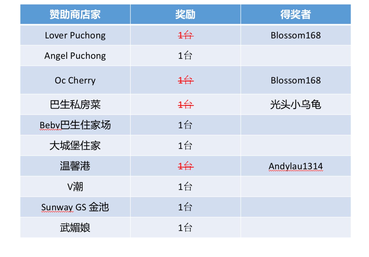 注意 ‼️ 由于某些店家赞助多台,请跟胖丁说明你的FR要放在哪个Bingo格子。