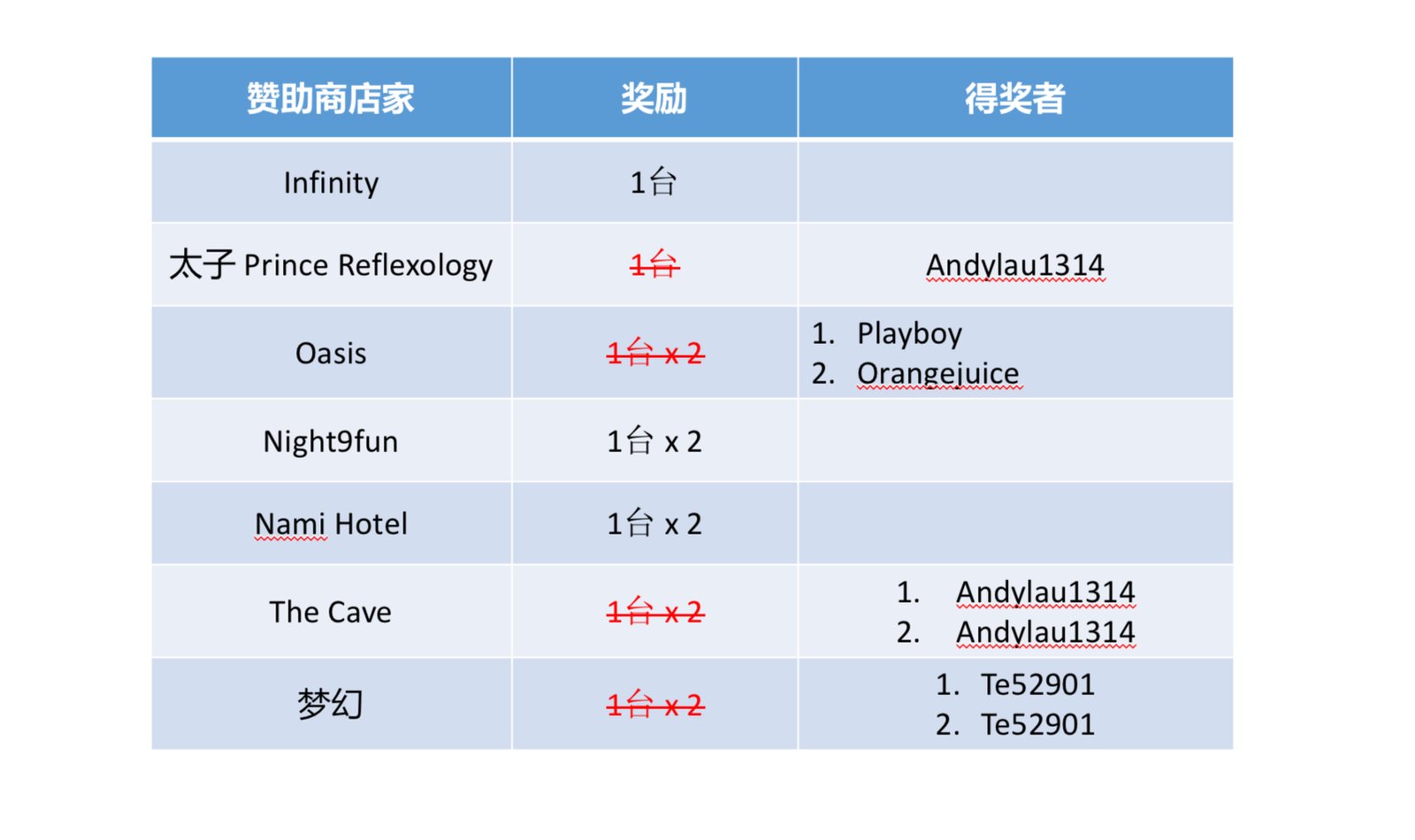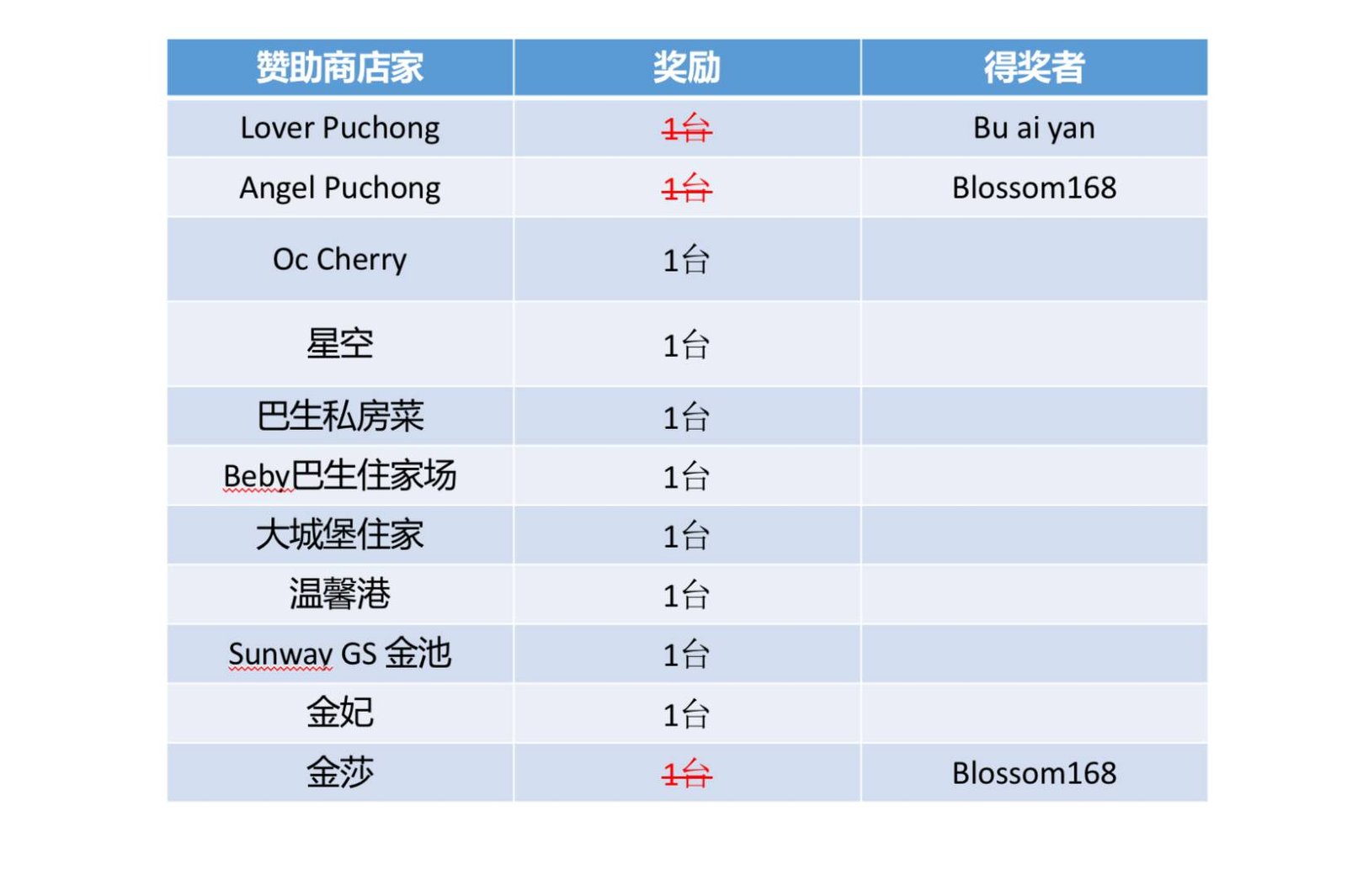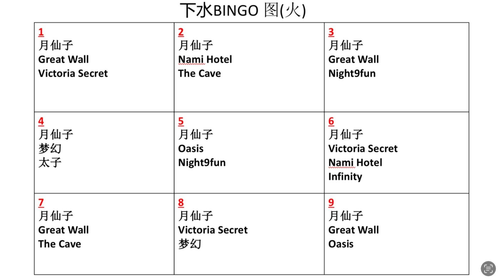 注意 ‼️ 由于某些店家赞助多台,请跟胖丁说明你的FR要放在哪个Bingo格子。