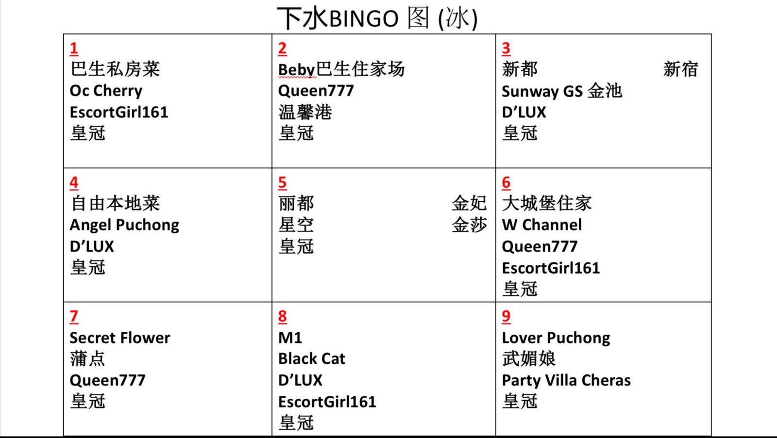 Night9fun的Bingo只给予小姐的FR在以下地区 :
