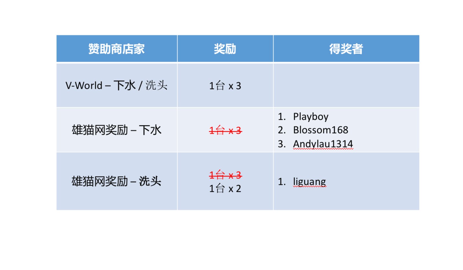 雄猫网和V-World赞助奖励 :
