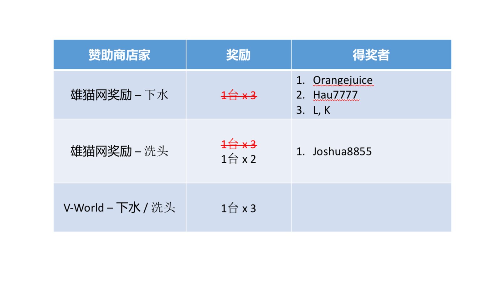雄猫网和V-World赞助奖励 :