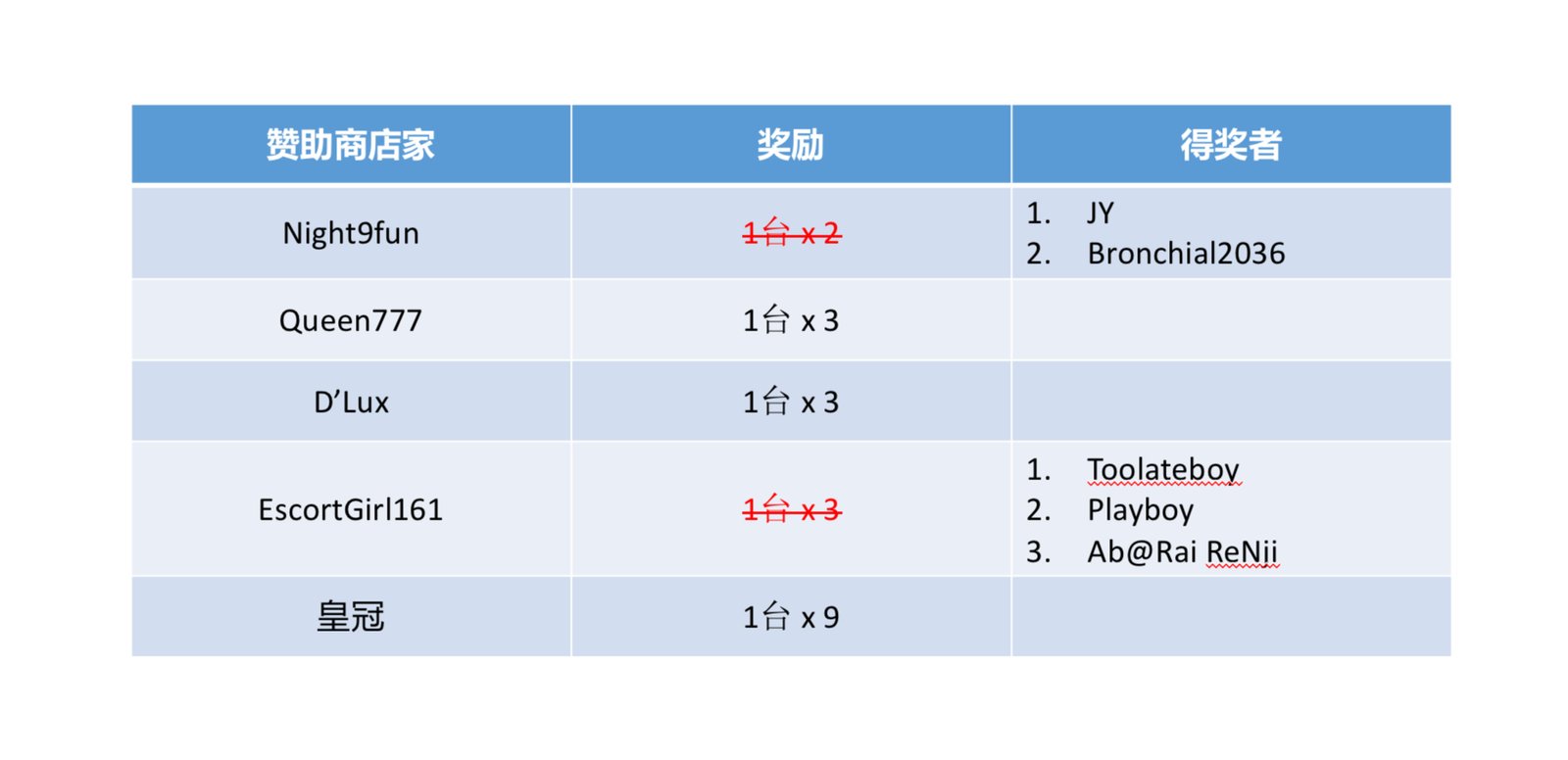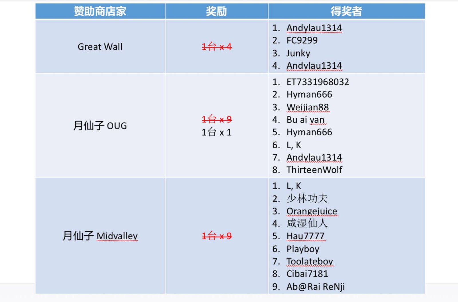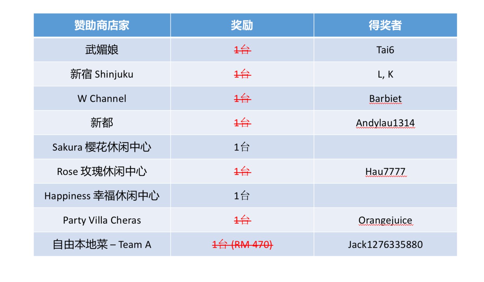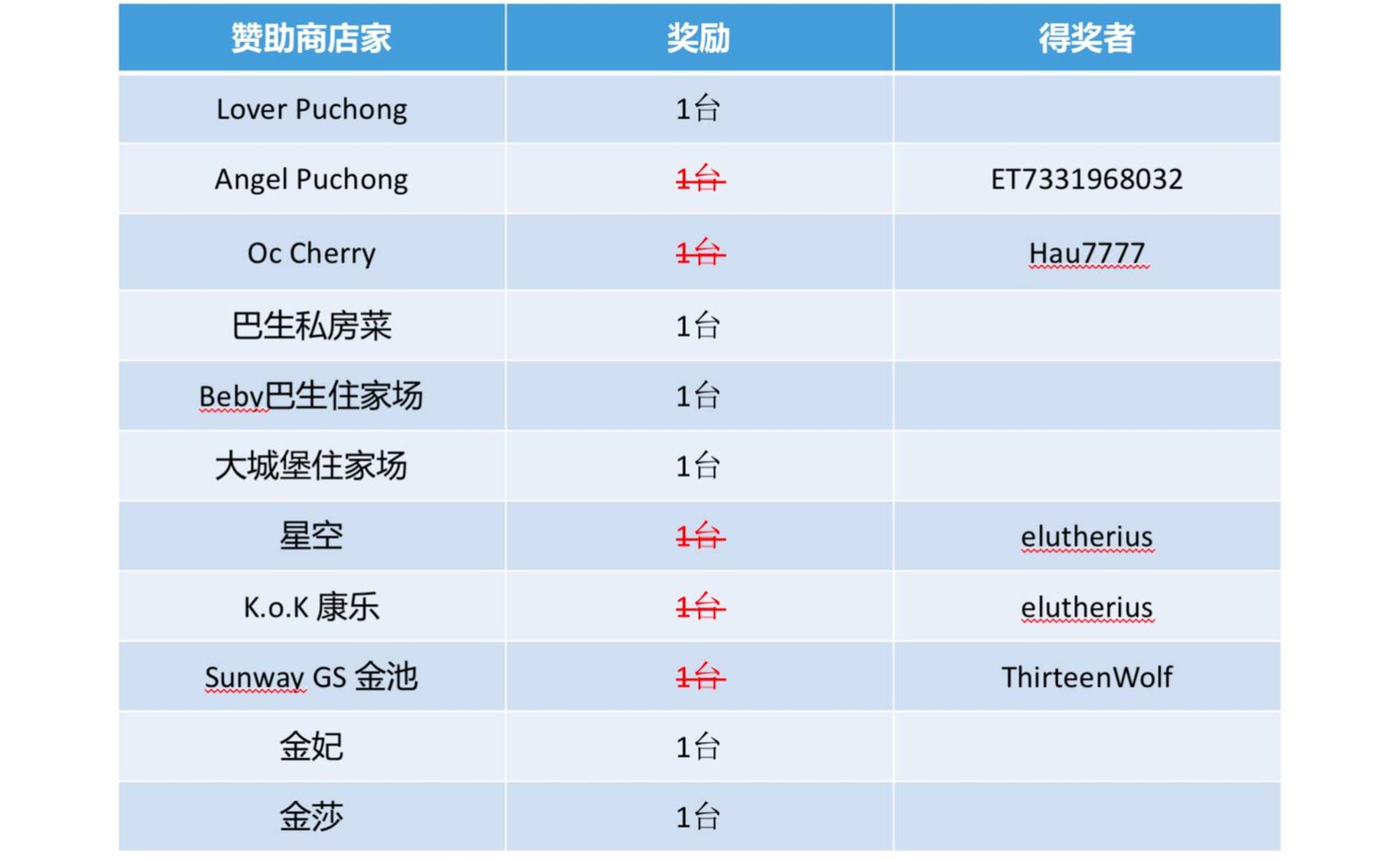 注意 ‼️ 由于某些店家赞助多台,请跟胖丁说明你的FR要放在哪个Bingo格子。