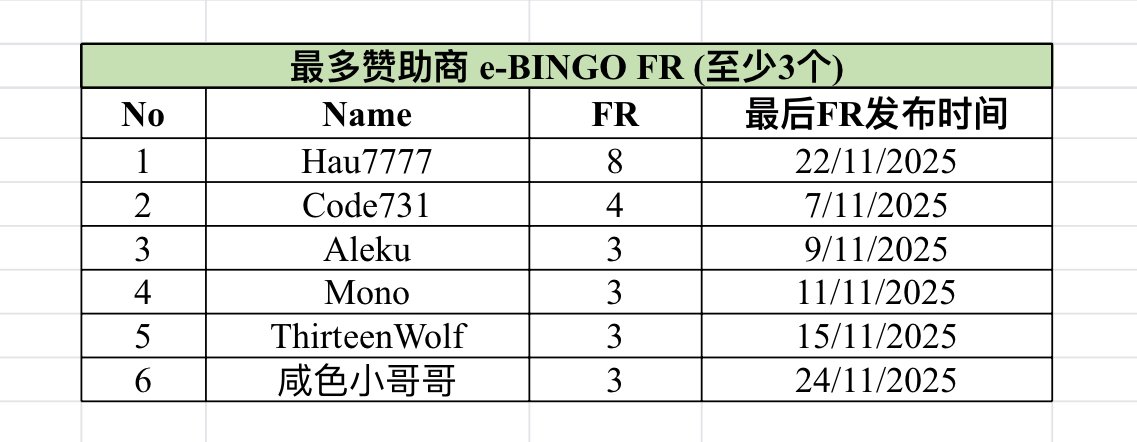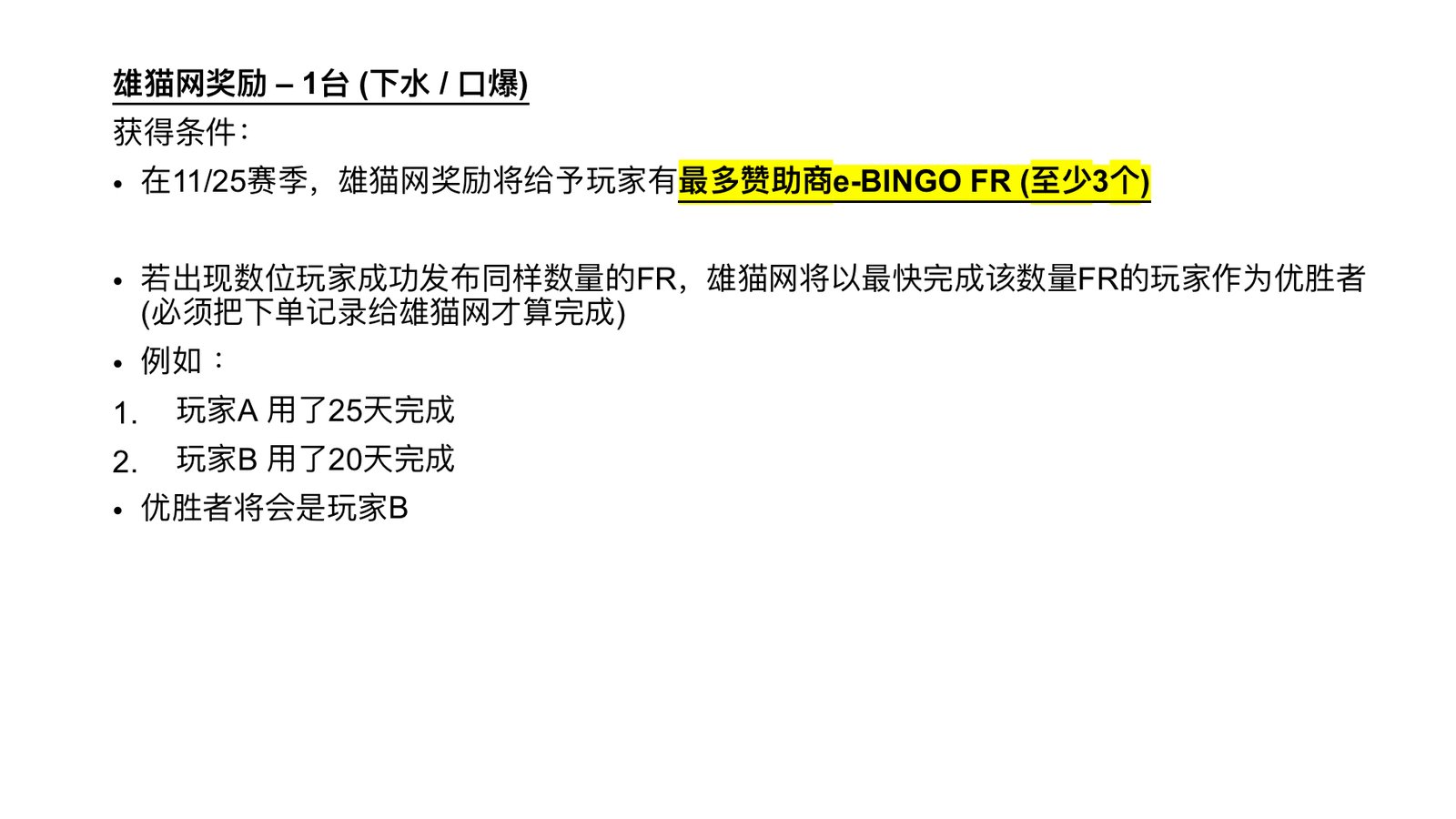 11/25 赛季将由雄猫网所赞助的【BINGO PLUS】。