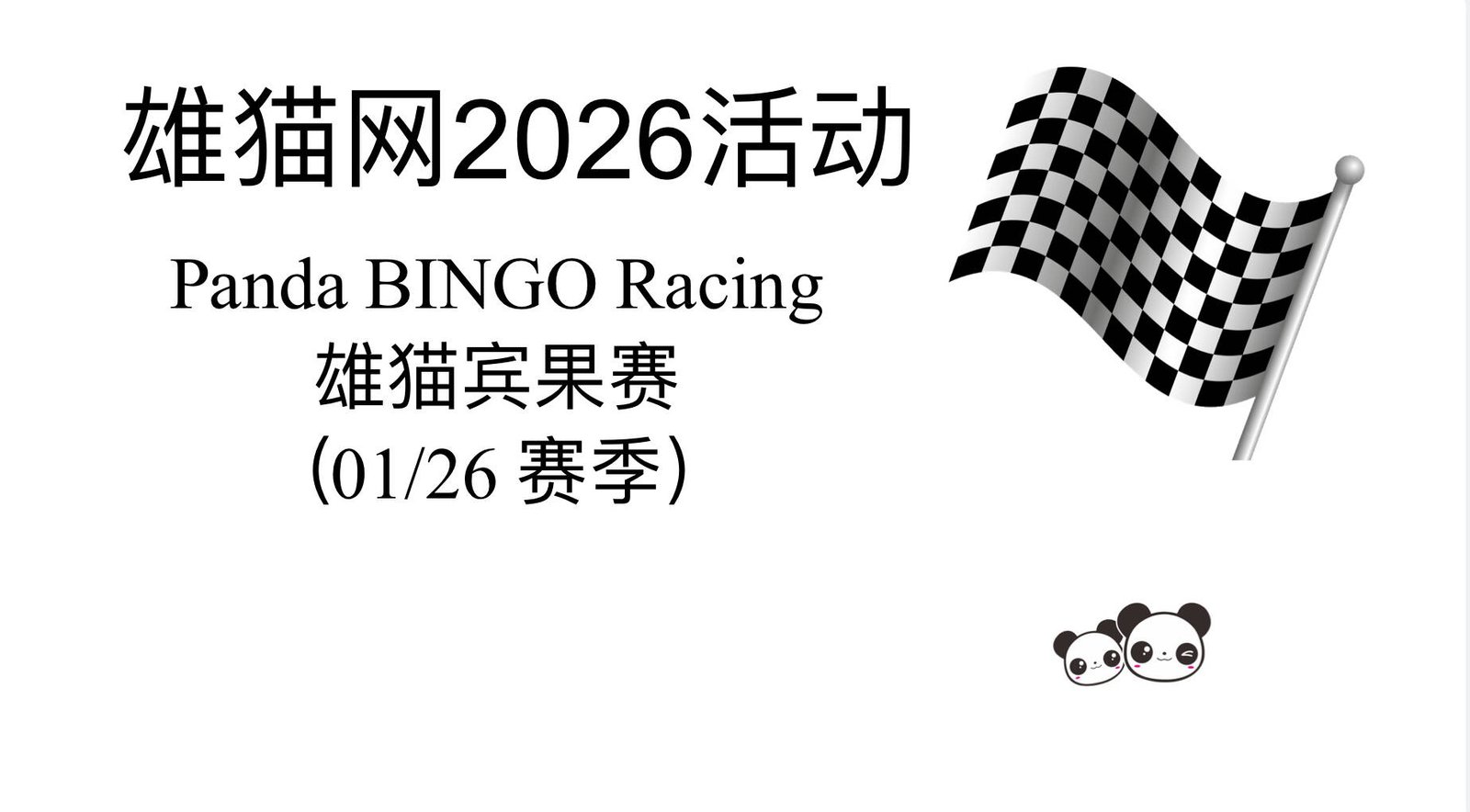 大家好!在2026年1月份将会继续举办雄猫网活动- Panda BINGO Racing 雄猫宾果赛。