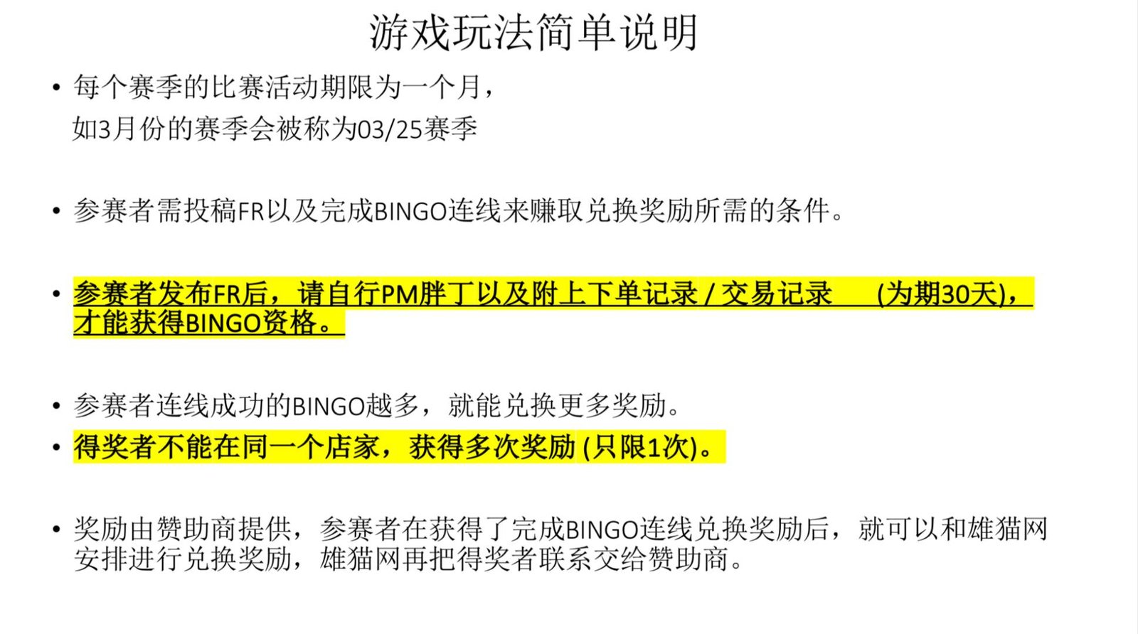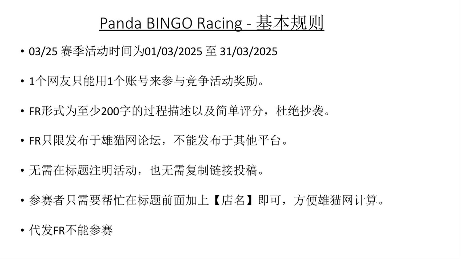 大家好!在3月份将会继续举办雄猫网活动- Panda BINGO Racing 雄猫宾果赛。