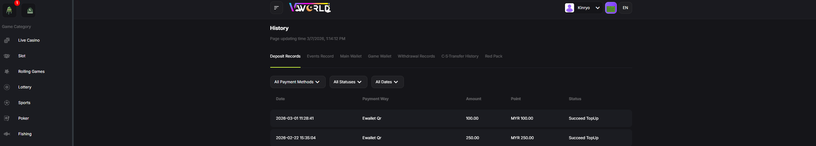 为了获取V-World赞助的【BINGO PLUS】,参赛者必须上传截图账号注册及需要上传截图存款记录(至少RM50)。