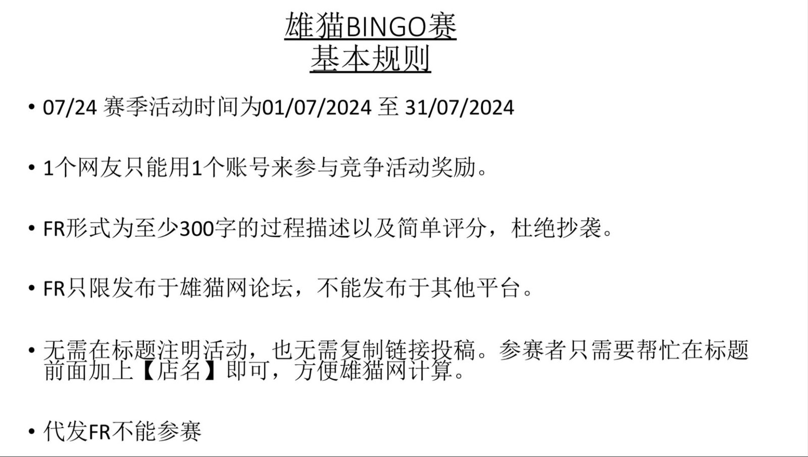 大家好!在7月份将会举办新的活动 - Panda BINGO Racing 雄猫宾果赛车,本月将是07/24赛季。