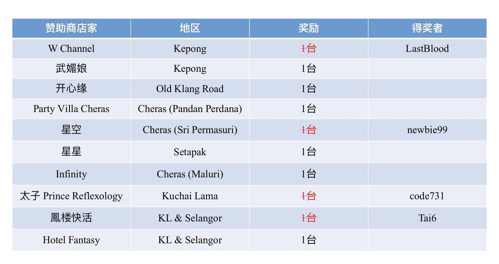 03/26赛季 e-BINGO的店家 :