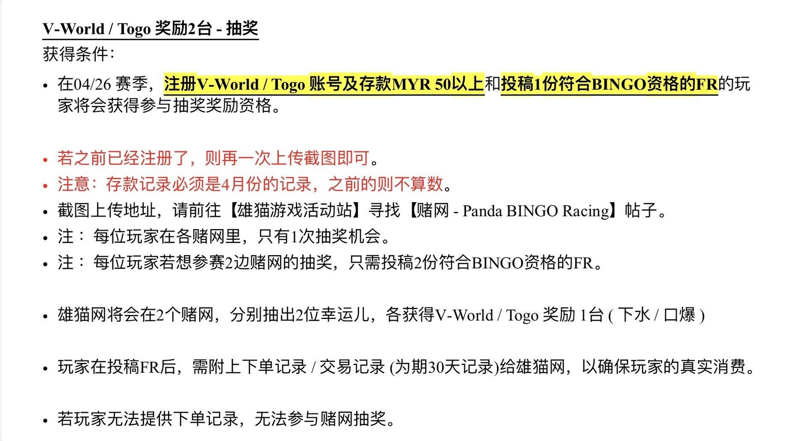 4月V-World抽奖参赛者名单 : (01/04/2026)