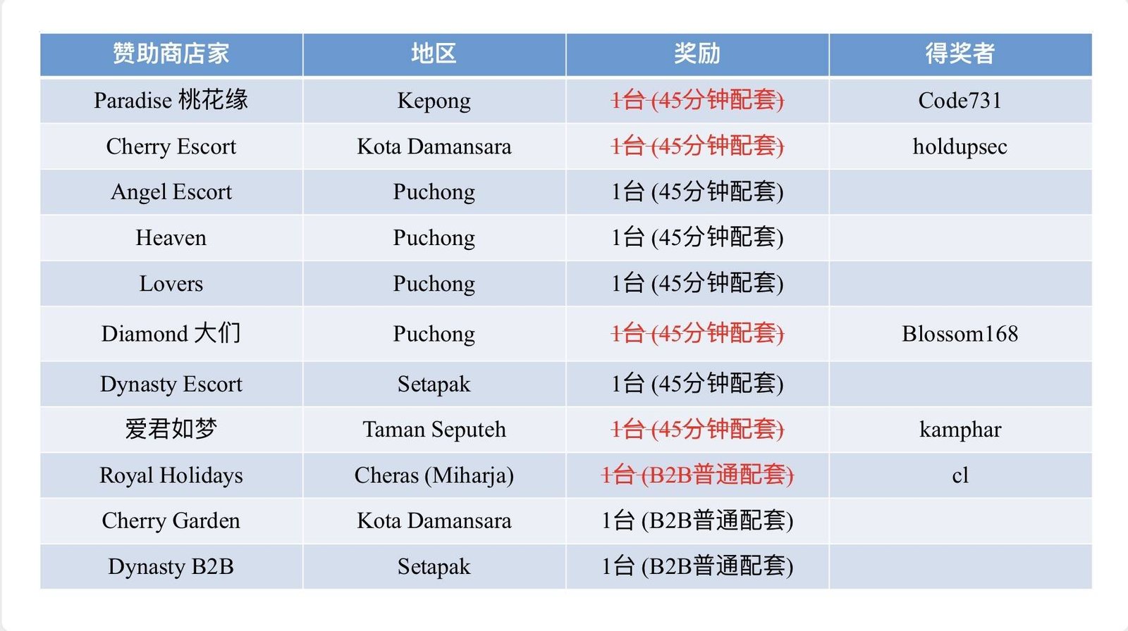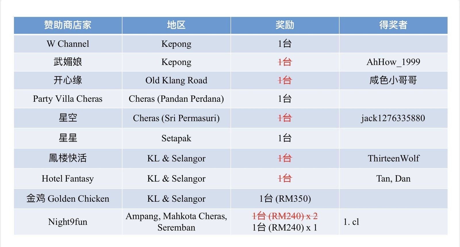 04/26赛季 e-BINGO的店家 :