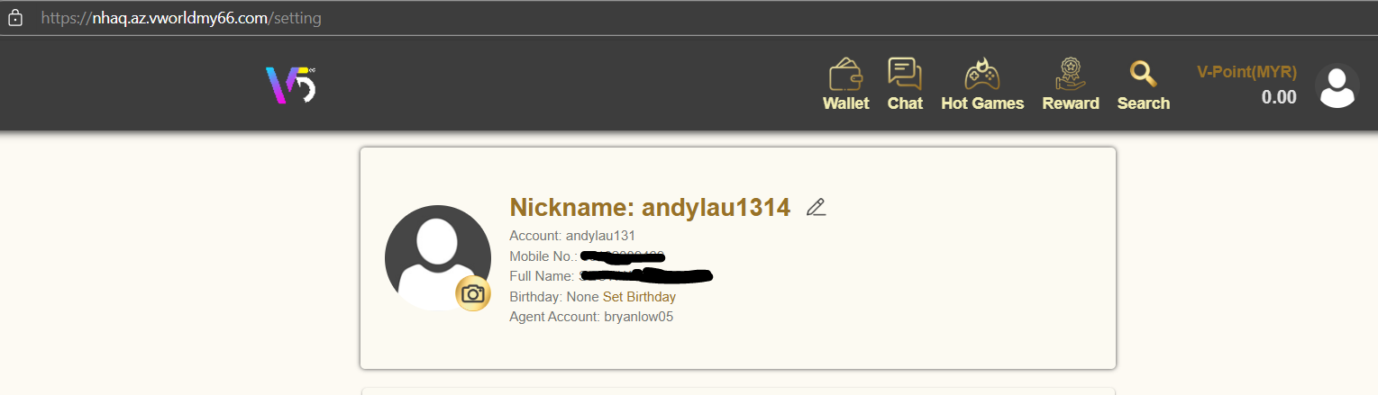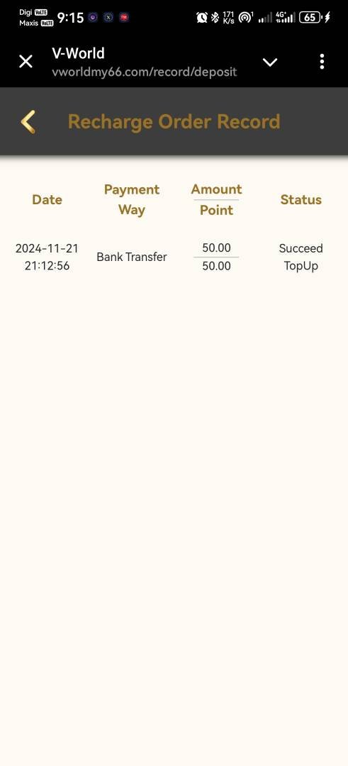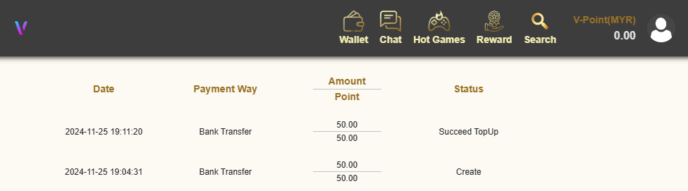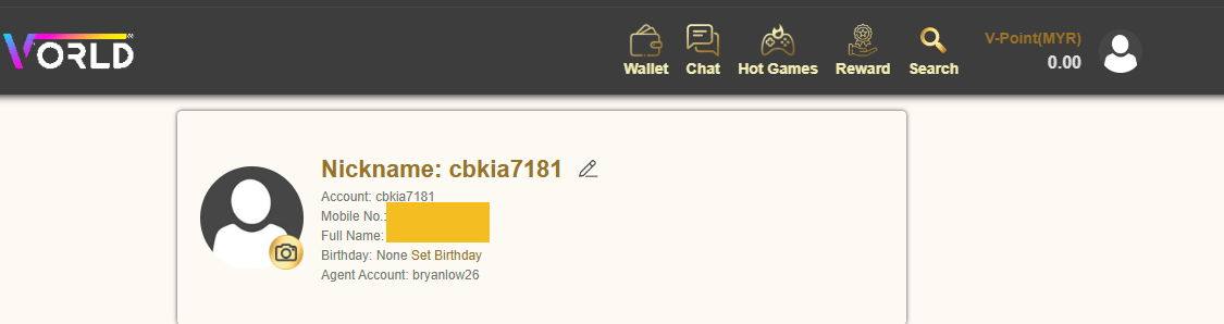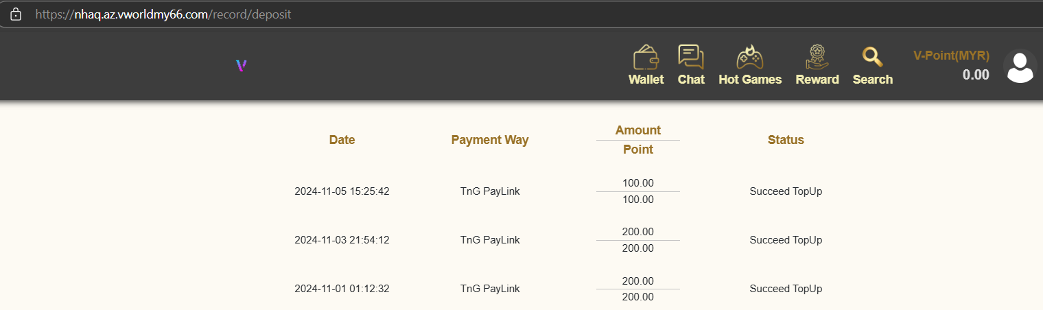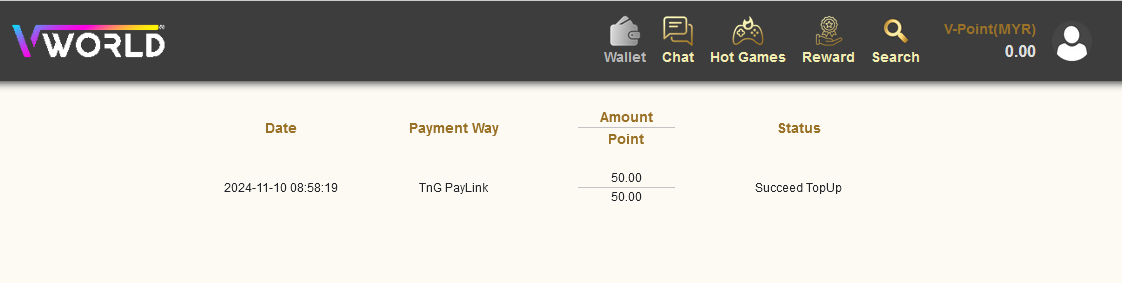 V-World - (Panda BINGO Racing 11/24赛季) 账号注册 & 存款记录